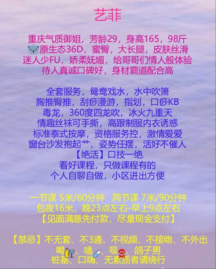 狼友介绍的,老师的课表写的是29岁,但我看实际有个三十多了,不过这都无所谓了,我找熟女就是奔着服务去的,老师是重庆人,跟东北人一样豪爽热情,身材有料屁股挺大的,服务卖力也挺骚,卖力归卖力,但是给我一种油腻感,她get不到我的点,我喜欢的是那种恰到好处的服务,不知道有没有兄弟能体会到我这种感觉,也可能是在外面玩多了,现在要求越来越高了,这次体验只能说一般爽吧。 ![]() |
